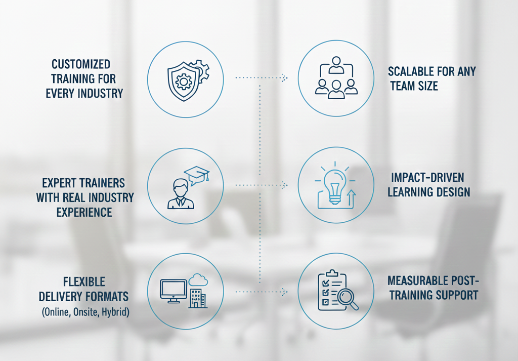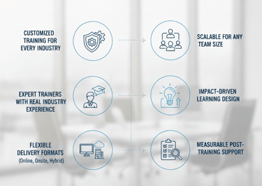 Our structured training approach ensures every program is aligned to your business goals and delivers measurable results.