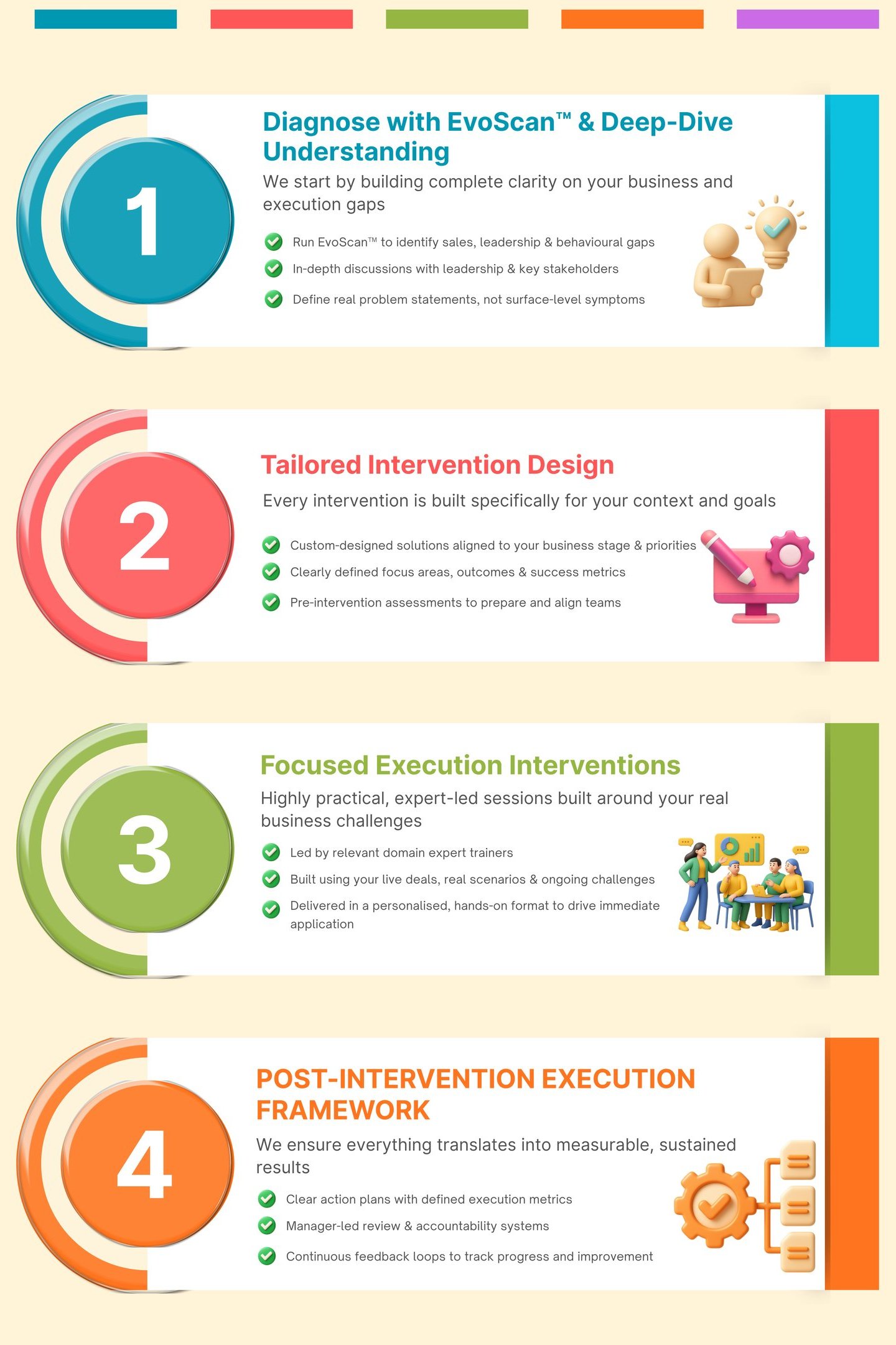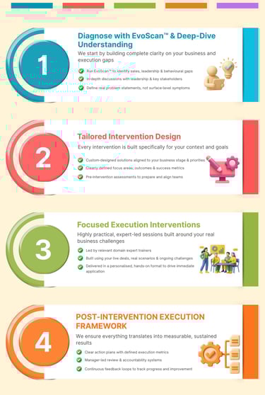 At Evolynce, we help organizations strengthen these capabilities through a diagnostic-led, performance-driven approach, ensuring learning translates into measurable on-the-job impact and business results.
