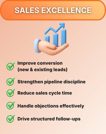 We provide corporate training in sales, leadership, communication, and behavioural skills, delivered by expert facilitators and backed by structured pre-assessment and post-training follow-through to ensure real results.