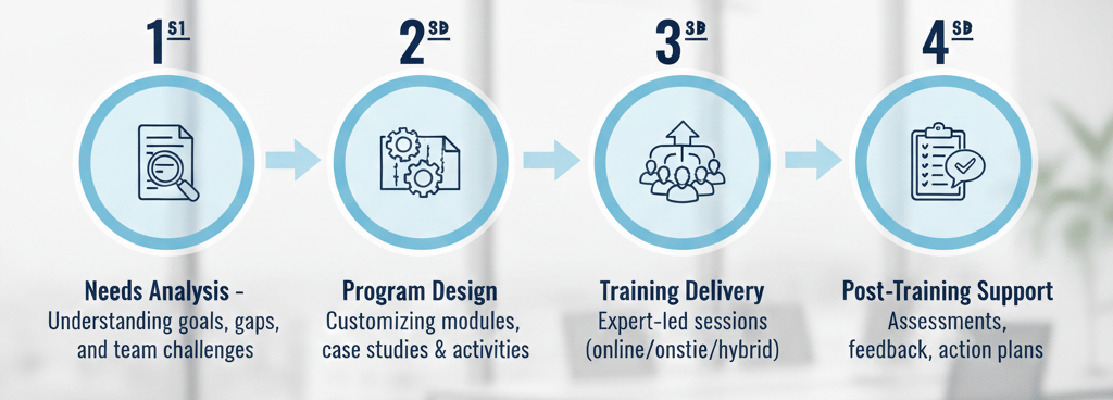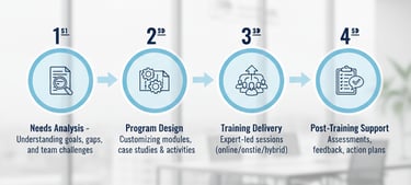 Our structured training approach ensures every program is aligned to your business goals and delivers measurable results.